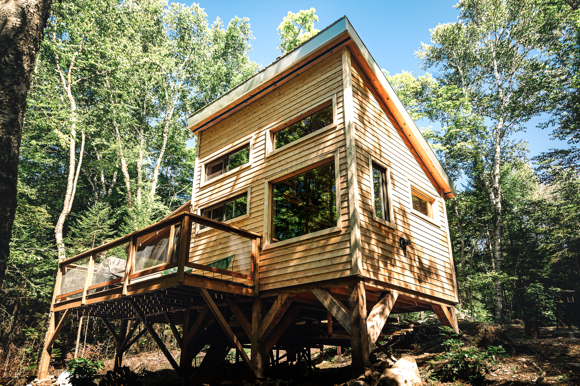 The Canopy is the perfect embodiment of the Lièvre Rouge experience, blending compact design, modern amenities, and an exceptional connection to the surrounding nature. Perched among the treetops with a view of the lake and direct access to it, this micro-cabin offers an intimate retreat for those seeking tranquility.